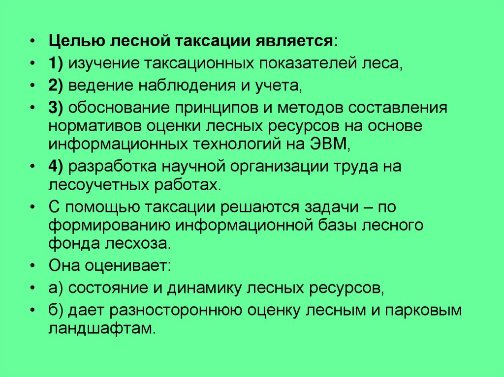 С помощью таксации решаются задачи – по