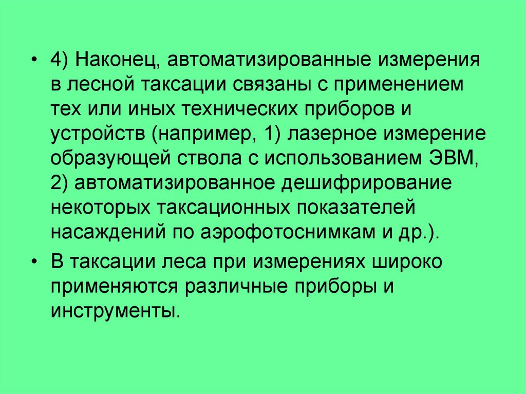 • 4) Наконец, автоматизированные измеренияв лесной таксации связаны с применением