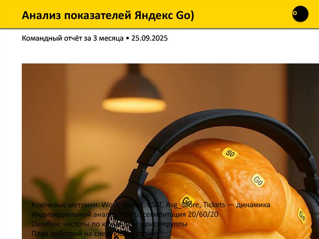 Анализ показателей Яндекс Go)Командный отчёт за 3 месяца • 25.09.2025