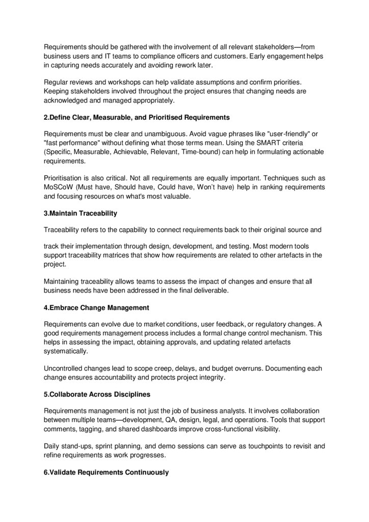 Prioritisation is also critical. Not all requirements are equally important. Techniques such as