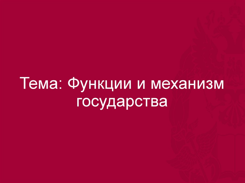 2. Вопросы лекции: 1. Понятие функций государства, их классификация. 2. Основные внутренние функции государства: виды, содержание