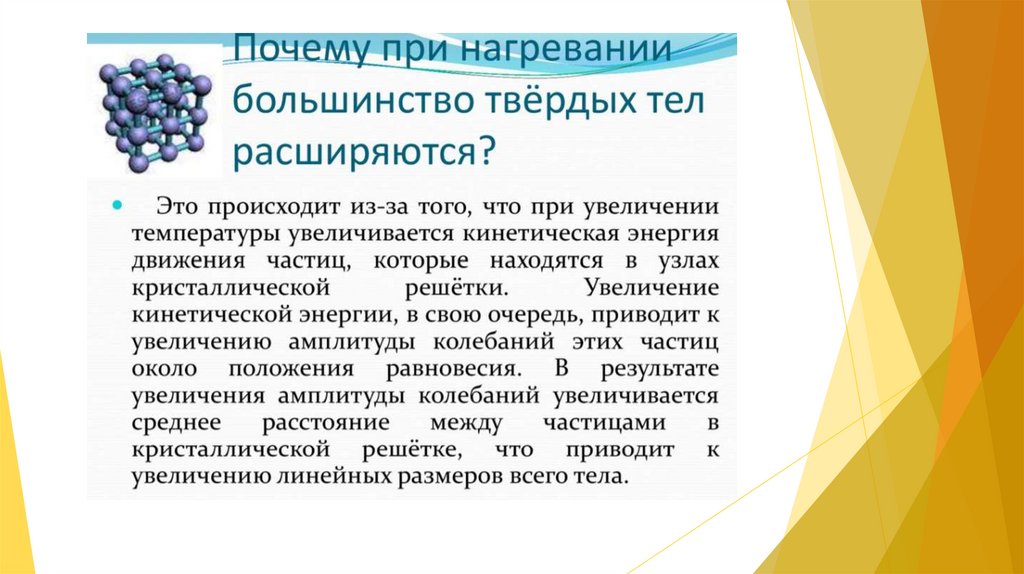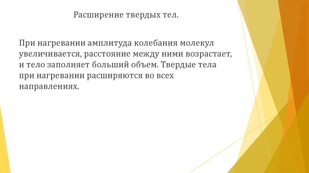 Расширение твердых тел.При нагревании амплитуда колебания молекул