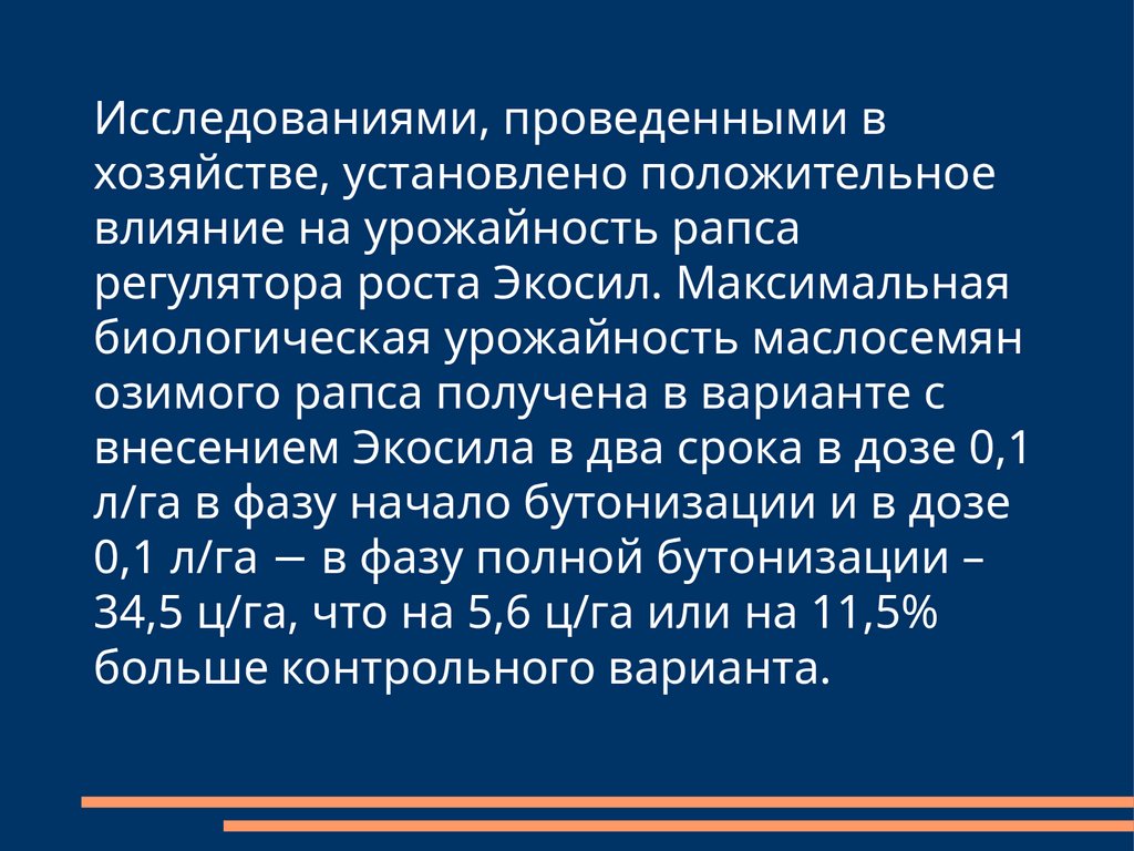 Таким образом, применяемая в хозяйстветехнология возделывания озимого рапса