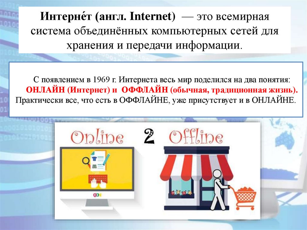 ОНЛАЙН (Интернет) и ОФФЛАЙН (обычная, традиционная жизнь).