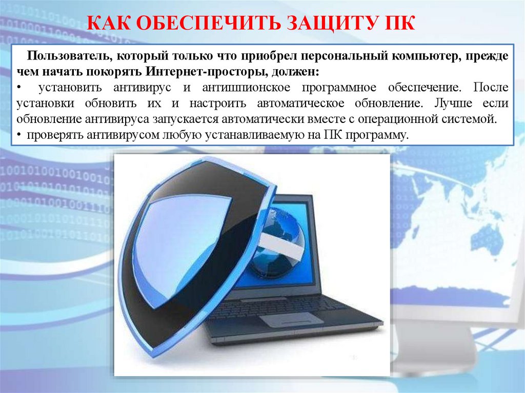 КАК ОБЕСПЕЧИТЬ ЗАЩИТУ ПКПользователь, который только что приобрел персональный компьютер, прежде