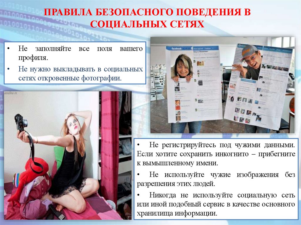 • Никогда не используйте социальную сеть