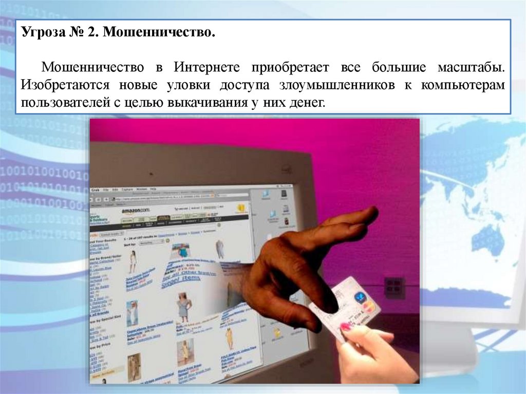 Угроза № 2. Мошенничество.Мошенничество в Интернете приобретает все большие масштабы.