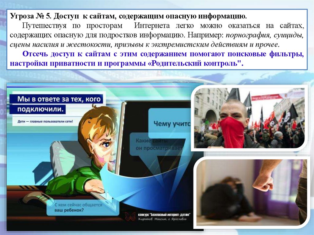 Угроза № 5. Доступ к сайтам, содержащим опасную информацию.Путешествуя по просторам