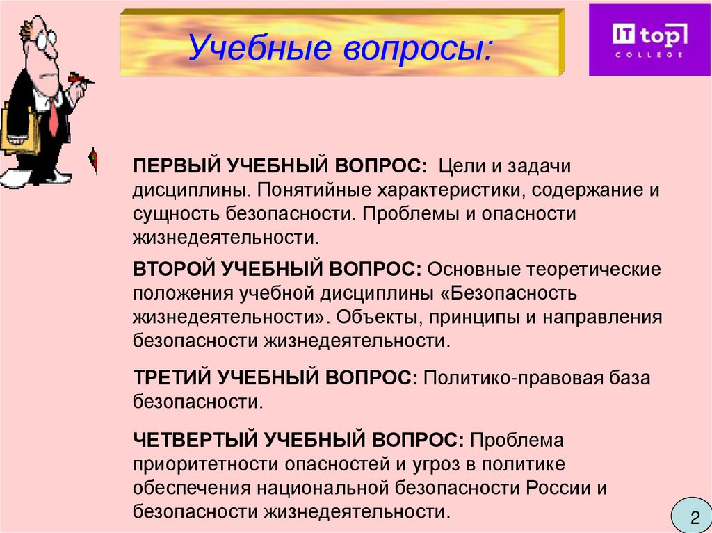 Учебные вопросы:ПЕРВЫЙ УЧЕБНЫЙ ВОПРОС: Цели и задачи