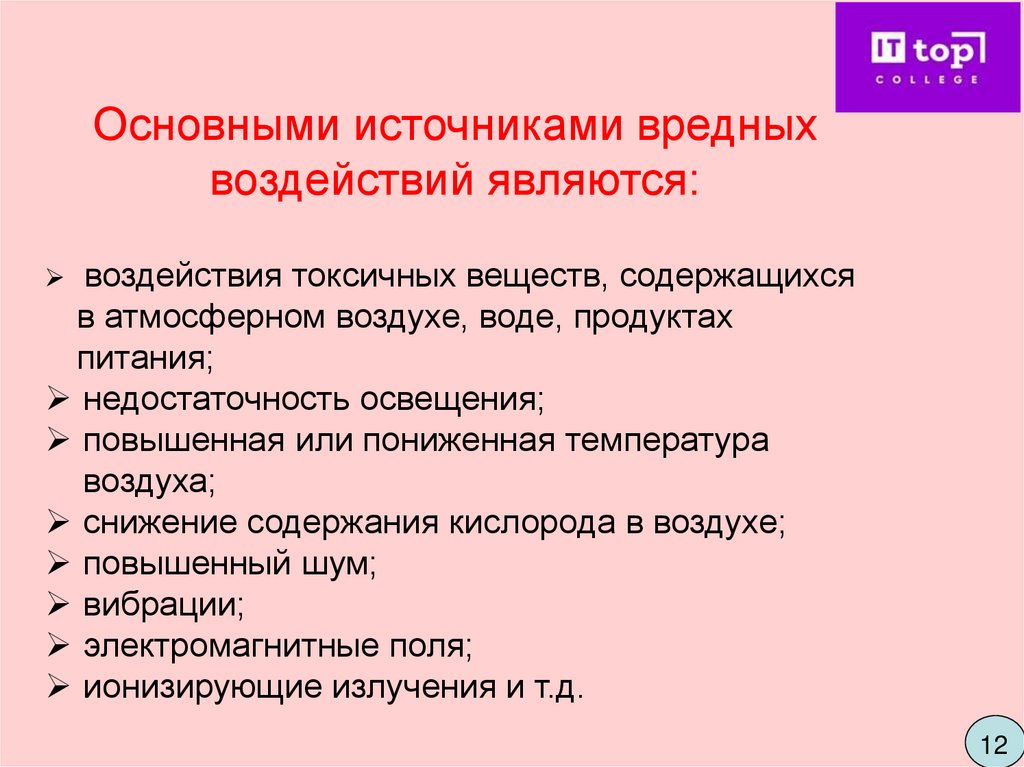 факторов производственной среды и в