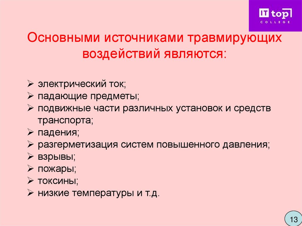 факторов, возникающих при авариях, катастрофах,