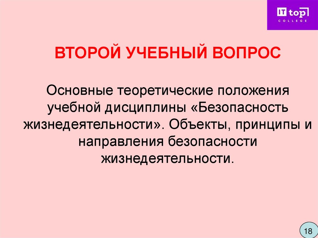 жизнедеятельности». Объекты, принципы и направления