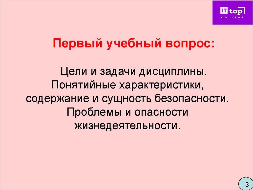 Первый учебный вопрос:Цели и задачи дисциплины.