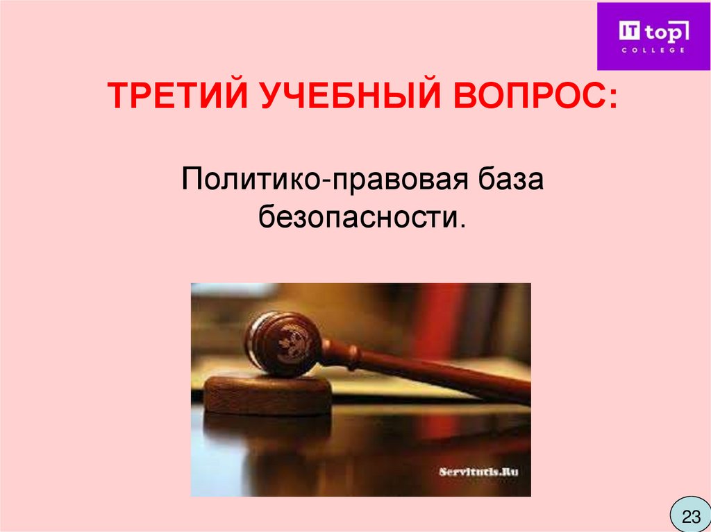 ТРЕТИЙ УЧЕБНЫЙ ВОПРОС: Политико-правовая база