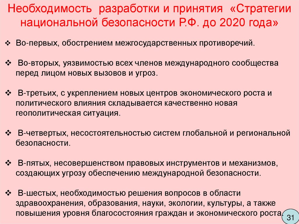 10. «Стратегия национальной безопасности Российской Федерации до 2020 года».
