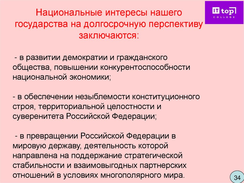 обеспечения национальной безопасности России и