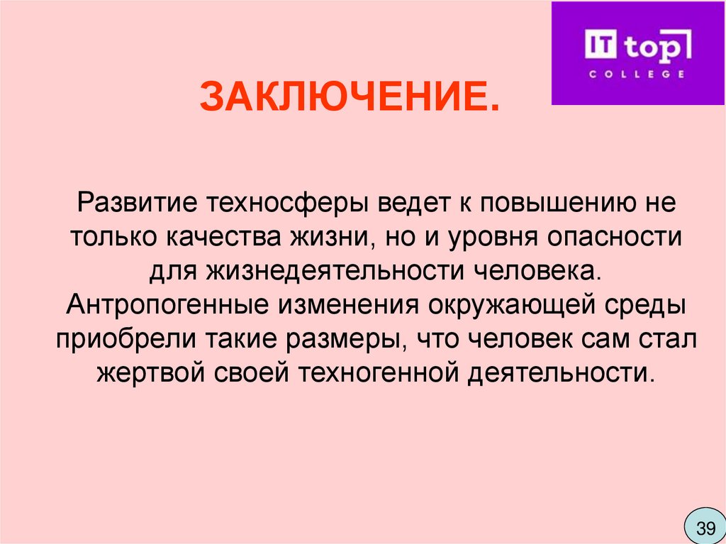 ЗАКЛЮЧЕНИЕ.Развитие техносферы ведет к повышению не