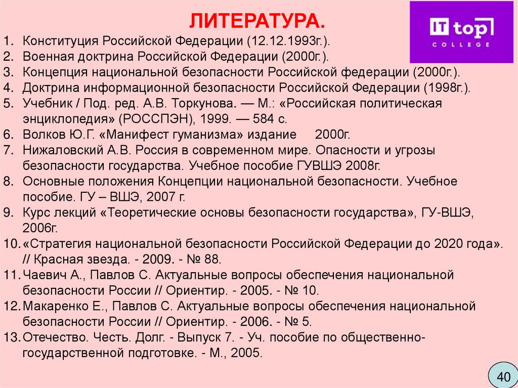 ЛИТЕРАТУРА.1. Конституция Российской Федерации (12.12.1993г.).