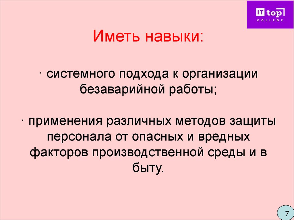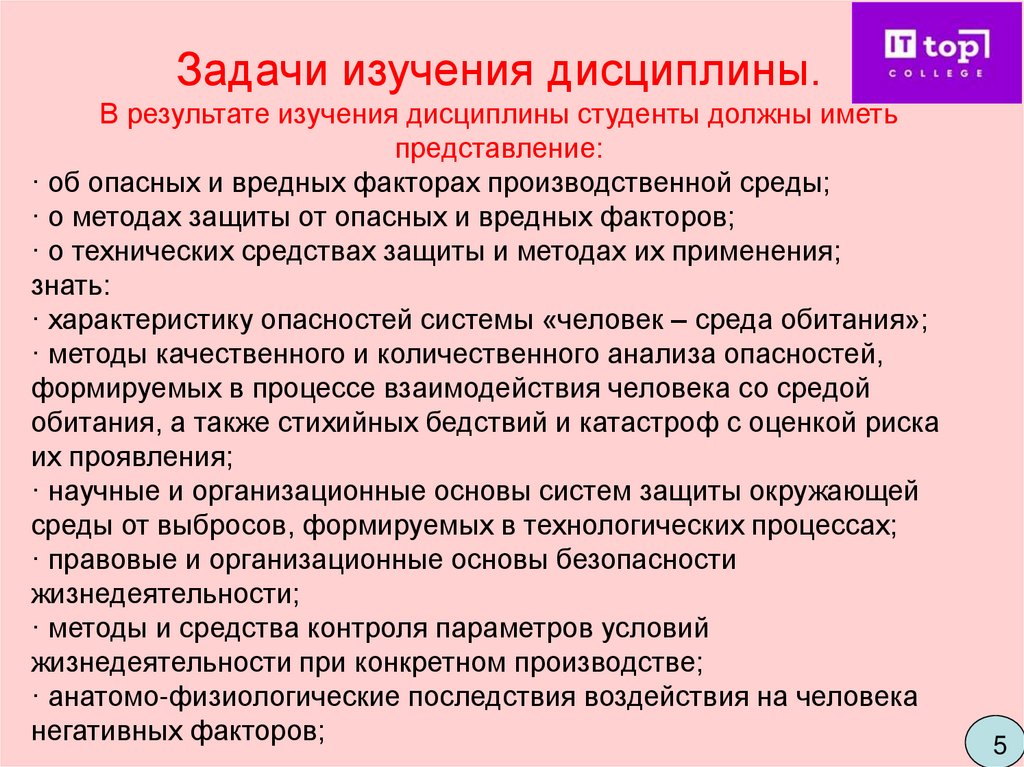 · о методах защиты от опасных и вредных факторов;