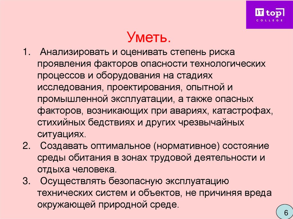 Уметь.1. Анализировать и оценивать степень риска