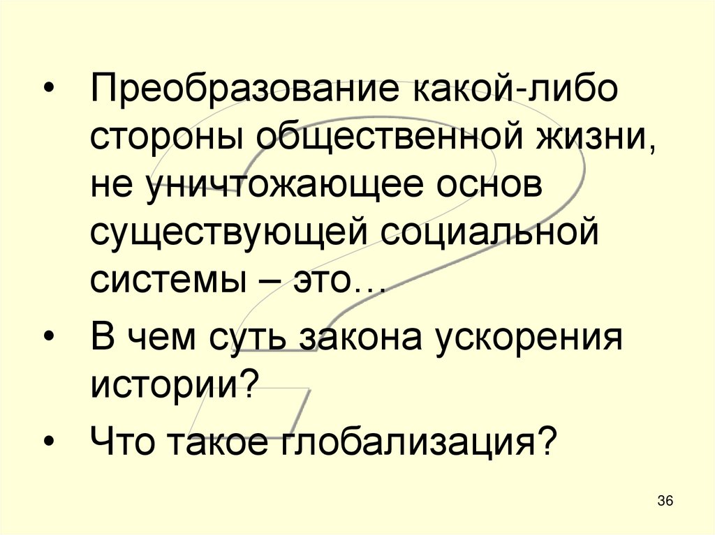 • Преобразование какой-либостороны общественной жизни,