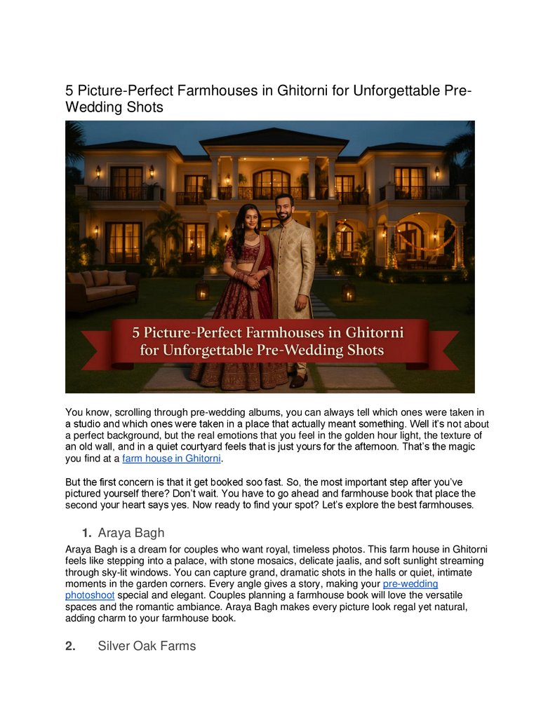5 Picture-Perfect Farmhouses in Ghitorni for Unforgettable PreWedding ShotsYou know, scrolling through pre-wedding albums, you can always tell which ones were taken in