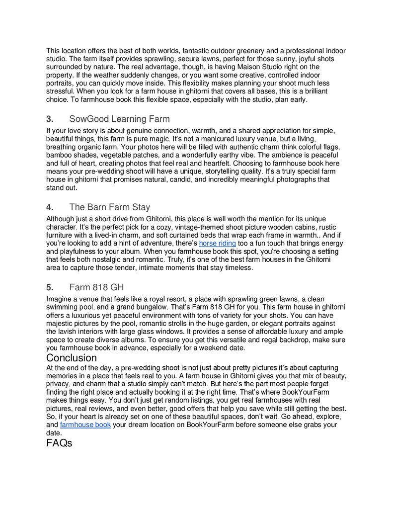 1. How early should I book farmhouse in Ghitorni for my pre-weddingshoot?