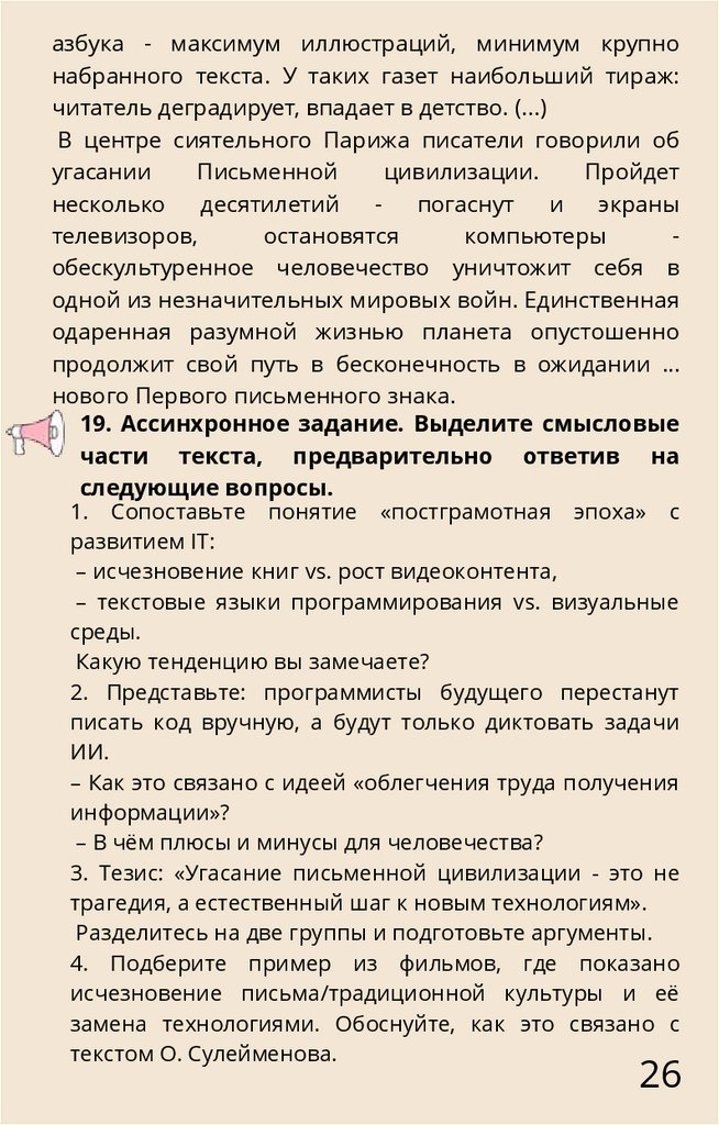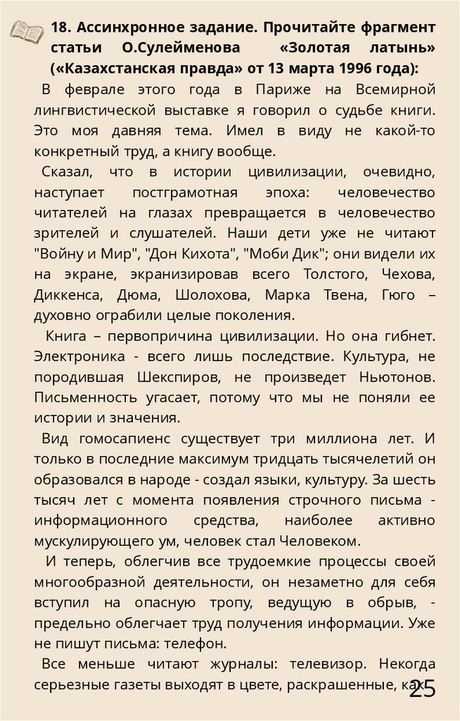 18. Ассинхронное задание. Прочитайте фрагментстатьи О.Сулейменова