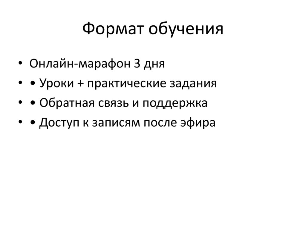 Формат обучения• Онлайн-марафон 3 дня