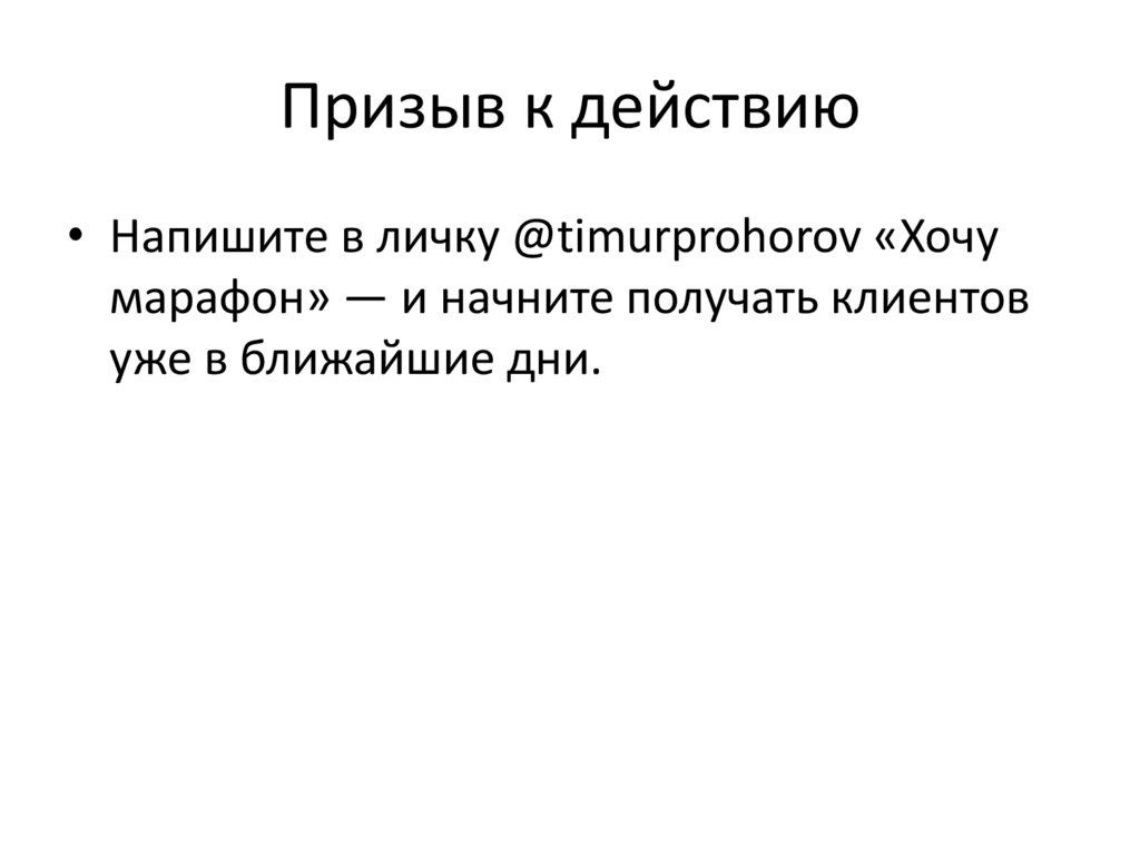 Призыв к действию• Напишите в личку @timurprohorov «Хочу