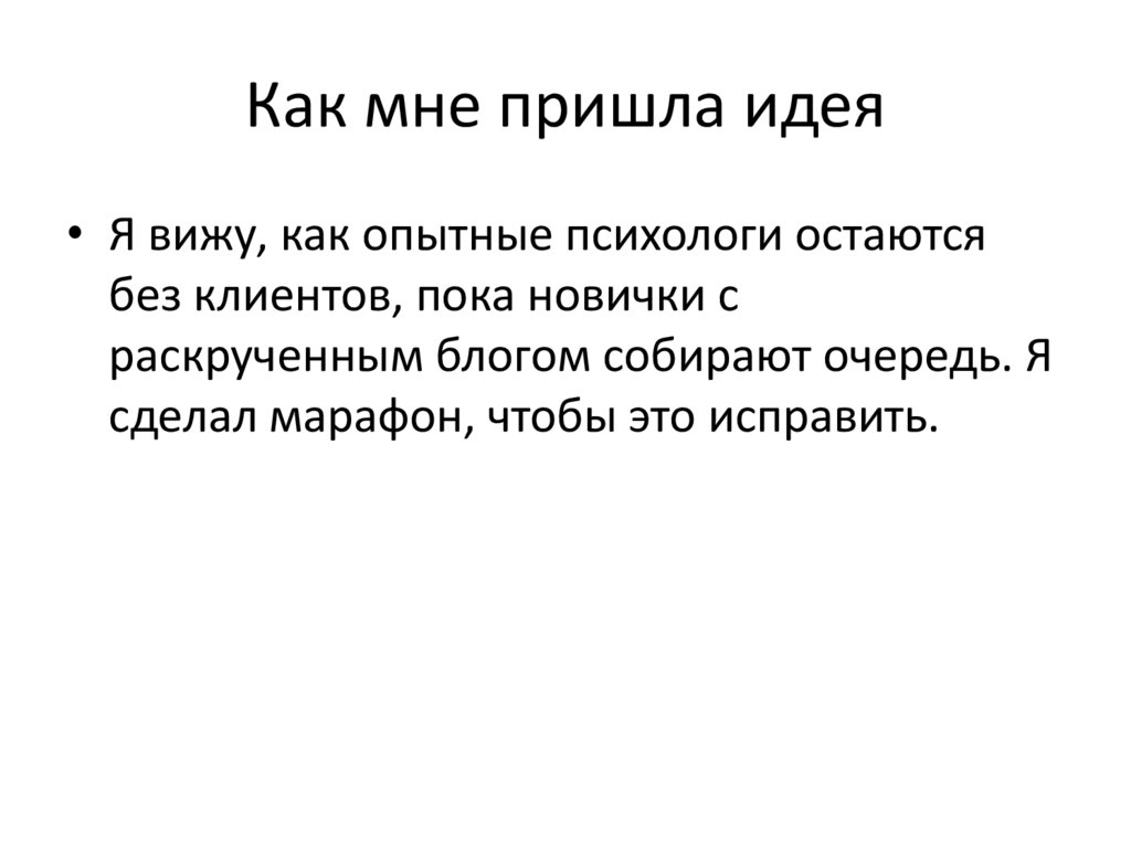Как мне пришла идея• Я вижу, как опытные психологи остаются