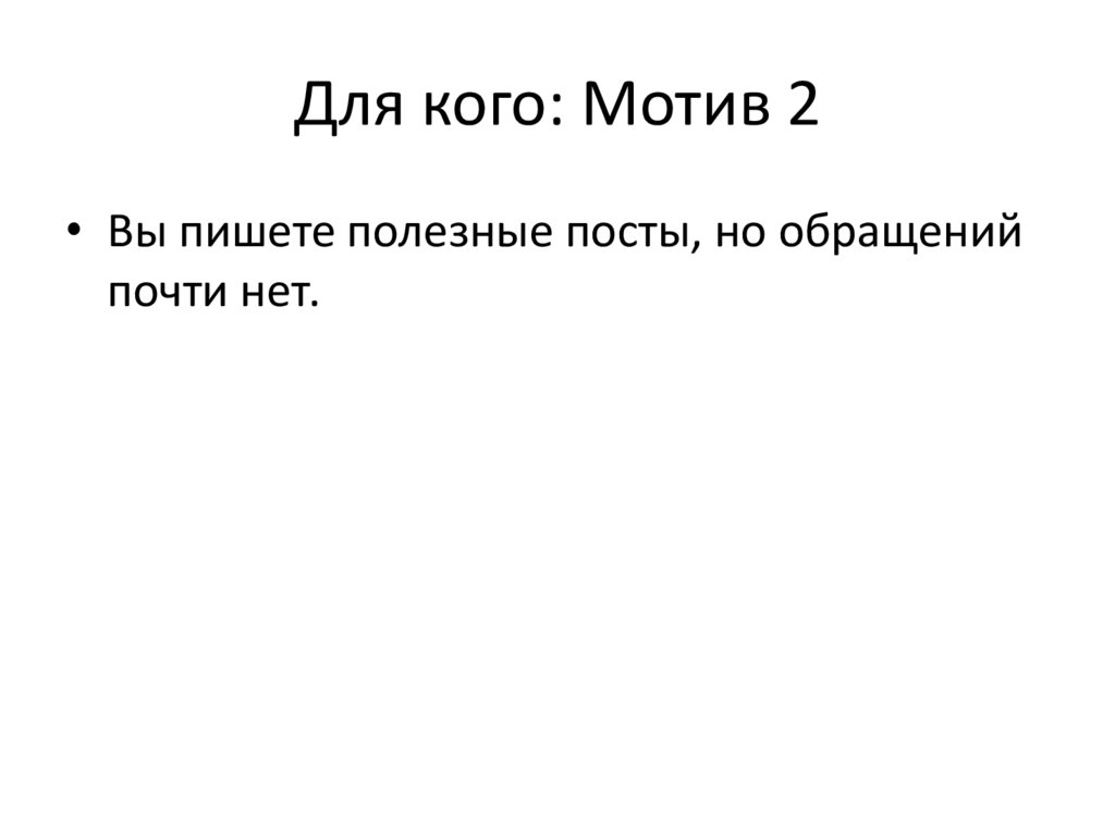 Для кого: Мотив 2• Вы пишете полезные посты, но обращений