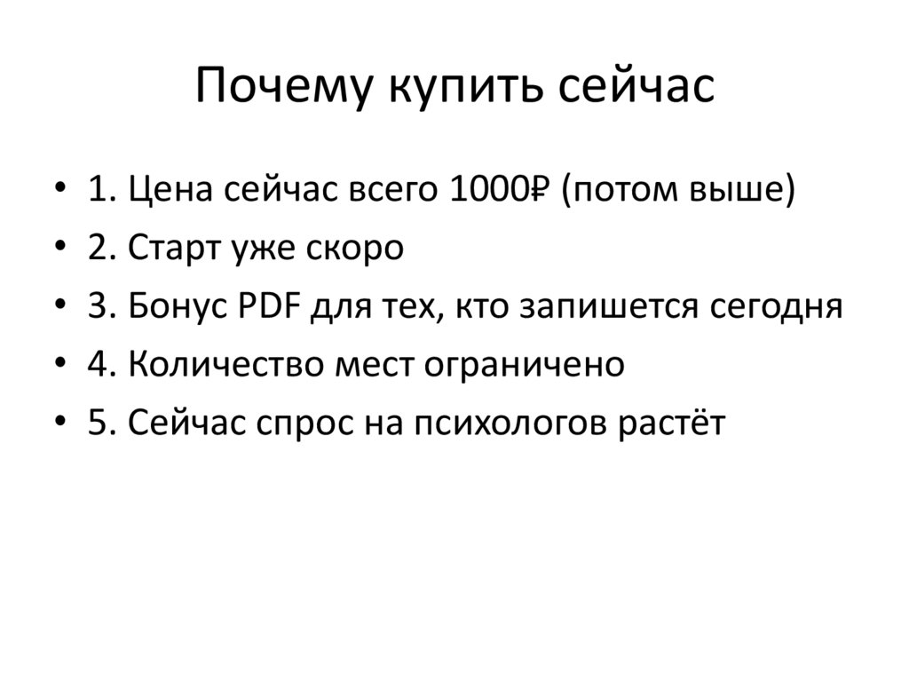Почему купить сейчас• 1. Цена сейчас всего 1000₽ (потом выше)