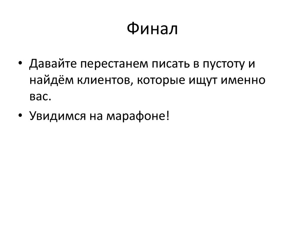 Финал• Давайте перестанем писать в пустоту и