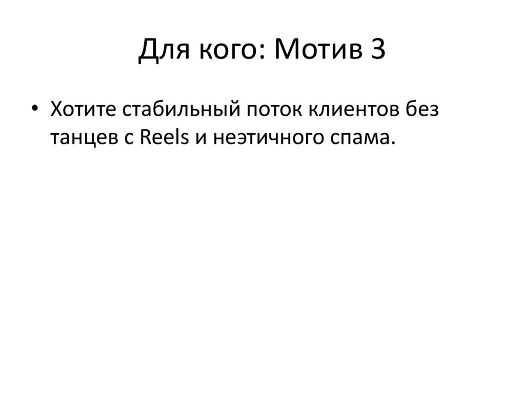 Для кого: Мотив 3• Хотите стабильный поток клиентов без