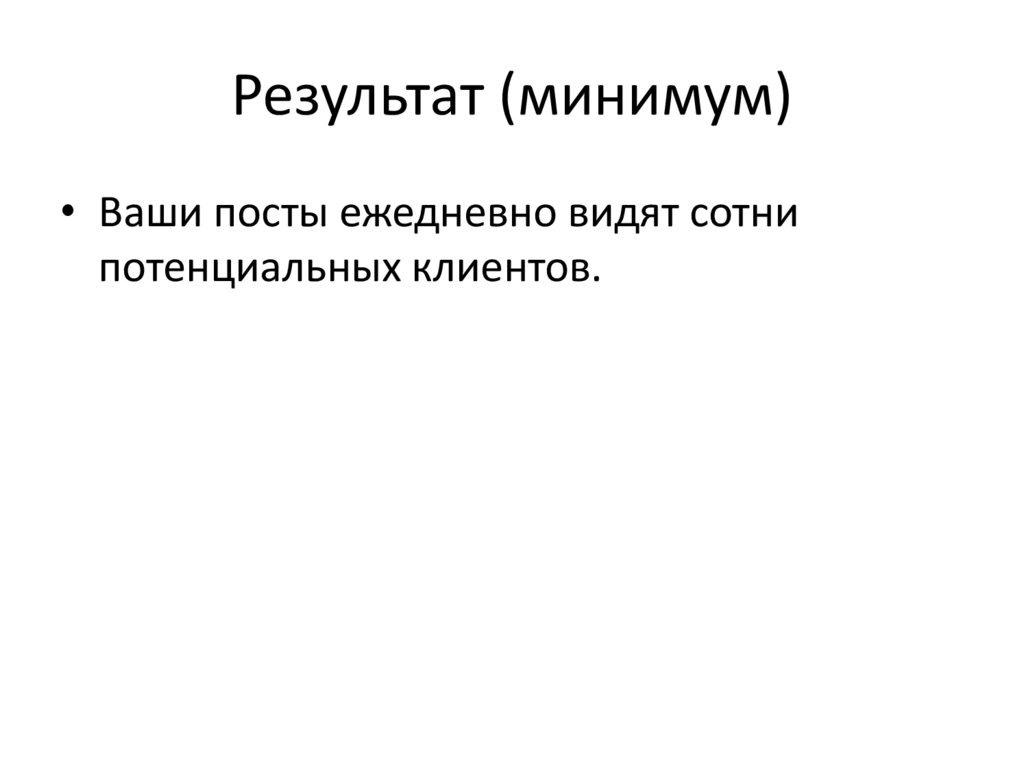 Результат (минимум)• Ваши посты ежедневно видят сотни