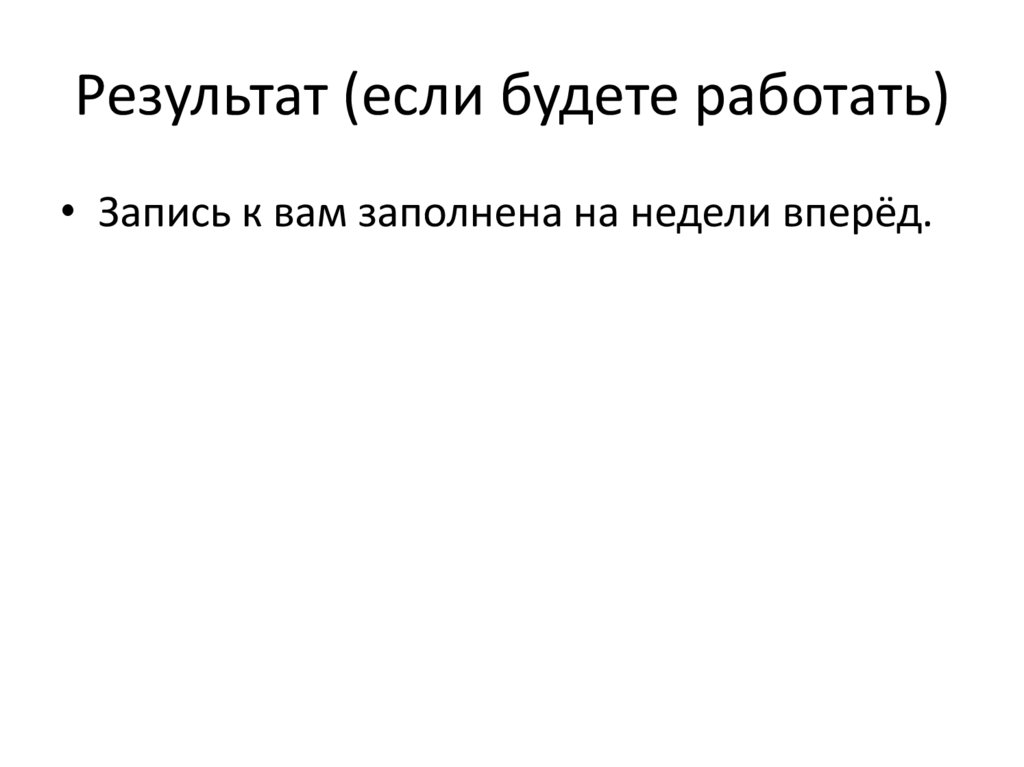 Результат (если будете работать)• Запись к вам заполнена на недели вперёд.