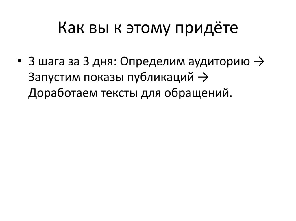 Как вы к этому придёте• 3 шага за 3 дня: Определим аудиторию →