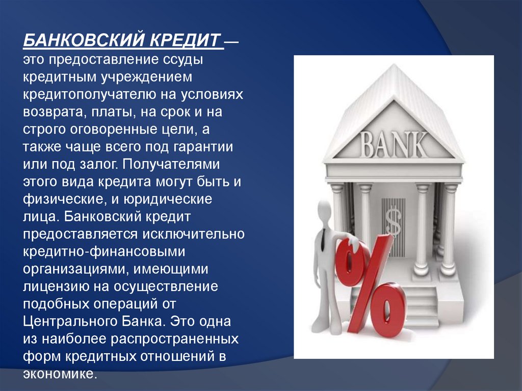 БАНКОВСКИЙ КРЕДИТ —это предоставление ссуды
