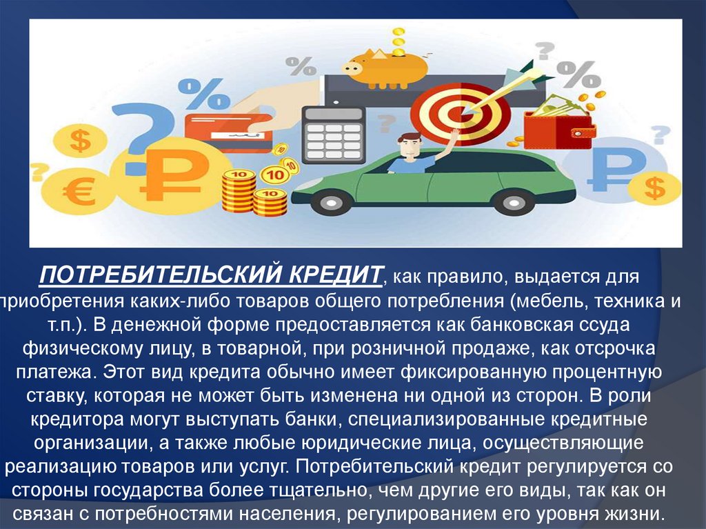 реализацию товаров или услуг. Потребительский кредит регулируется со