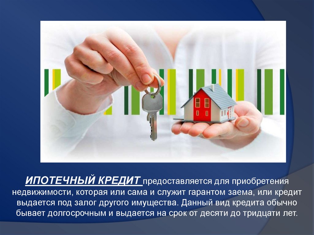 ИПОТЕЧНЫЙ КРЕДИТ предоставляется для приобретениянедвижимости, которая или сама и служит гарантом заема, или кредит