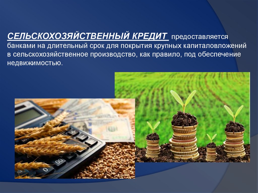 СЕЛЬСКОХОЗЯЙСТВЕННЫЙ КРЕДИТ предоставляетсябанками на длительный срок для покрытия крупных капиталовложений