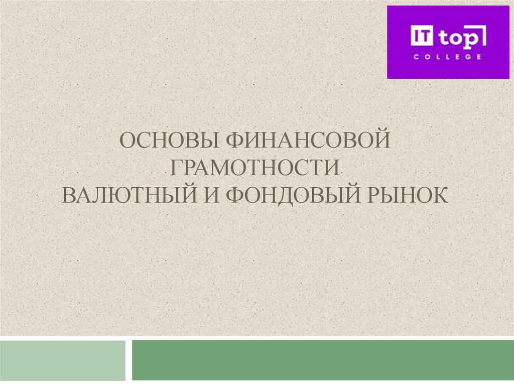 1. Основы финансовой грамотности валютный и Фондовый рынок