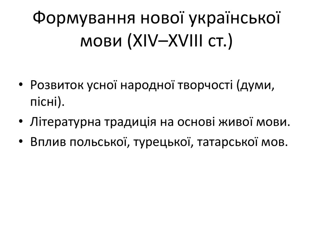 Формування нової українськоїмови (XIV–XVIII ст.)