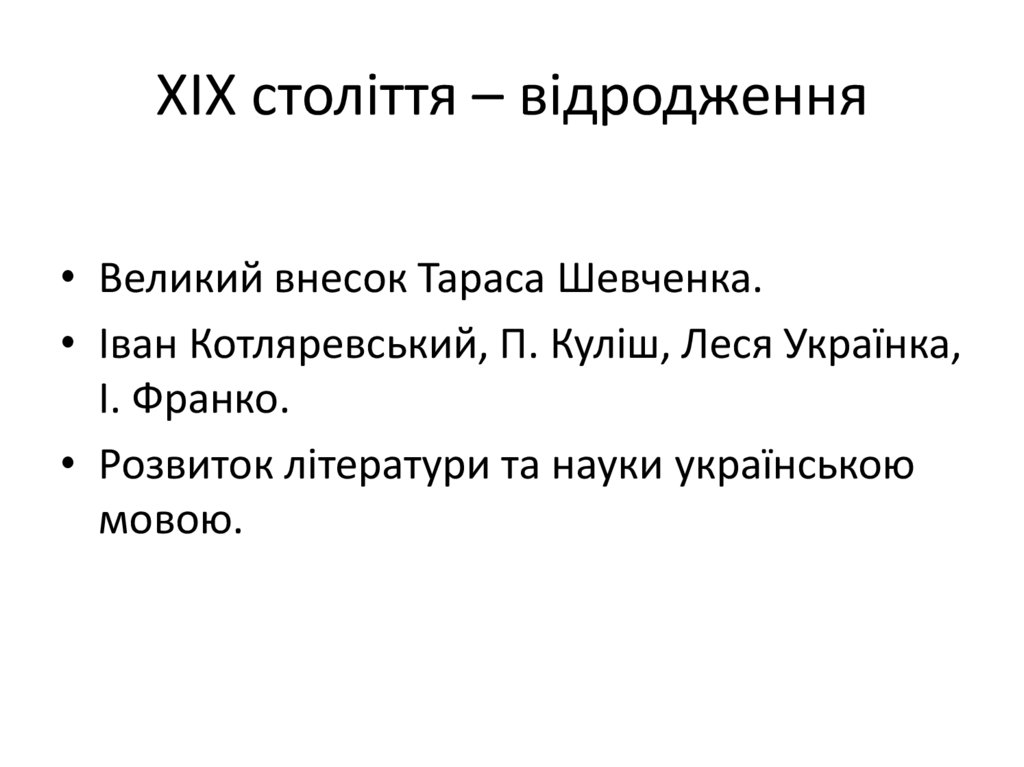 XIX століття – відродження• Великий внесок Тараса Шевченка.