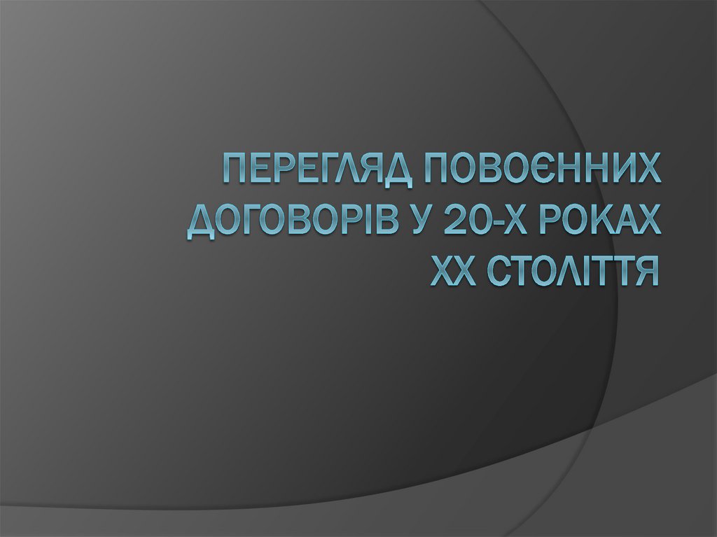 1. Перегляд повоєнних договорів у 20-х роках ХХ століття