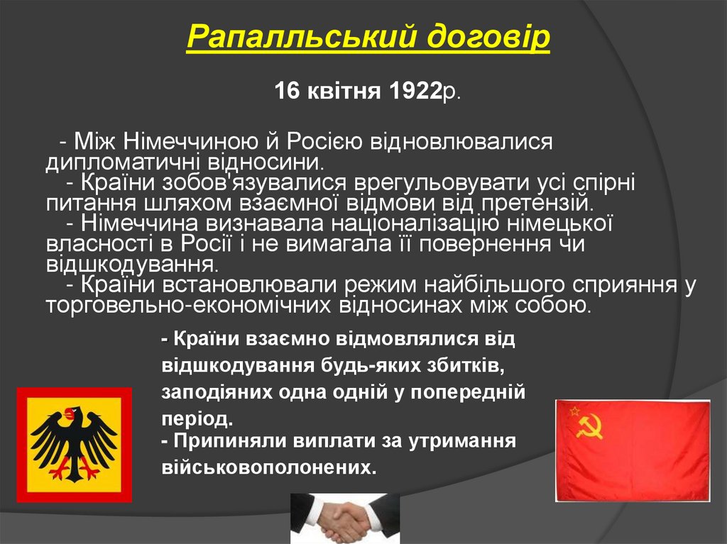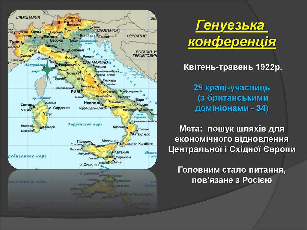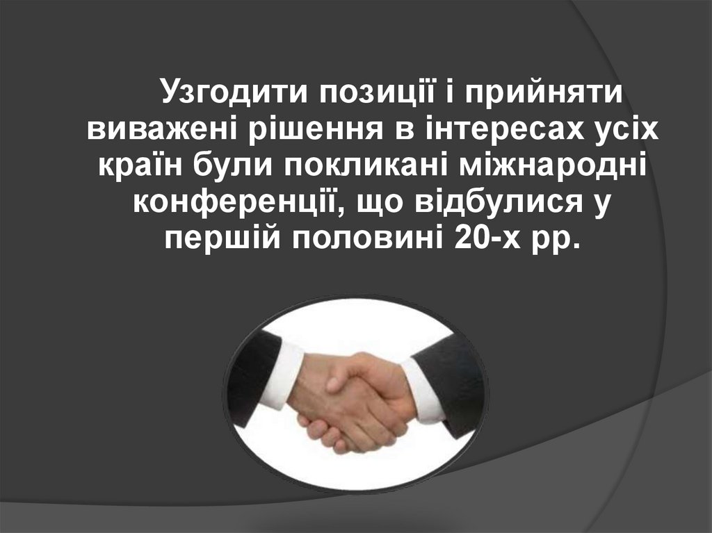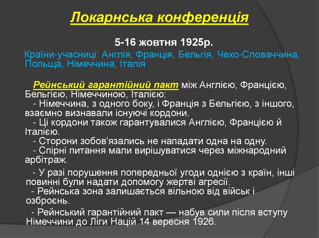 2. Головні постанови Генуезької (1922), Гаазької (1922), (1929), Лозаннської (1922-1923), Лондонської (1924), Локарнської (1925)