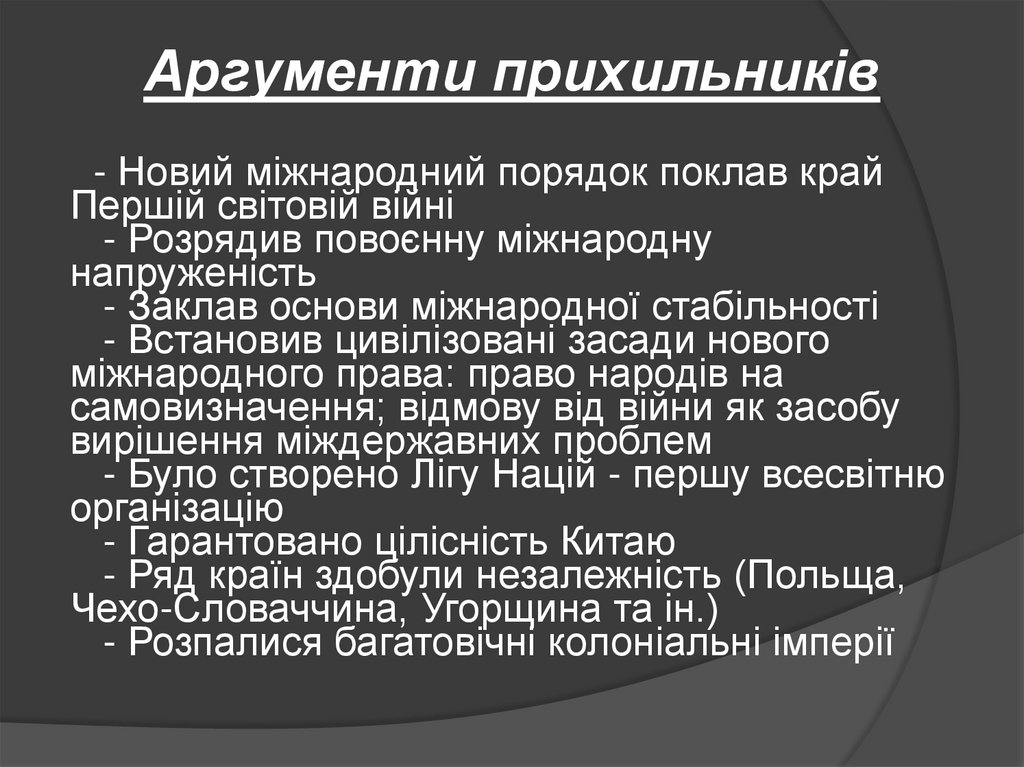 Аргументи прихильників- Новий міжнародний порядок поклав край