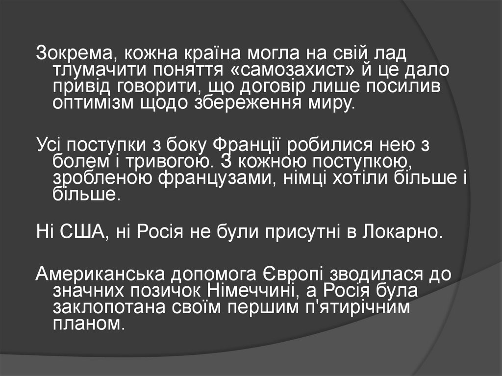 Зокрема, кожна країна могла на свій ладтлумачити поняття «самозахист» й це дало
