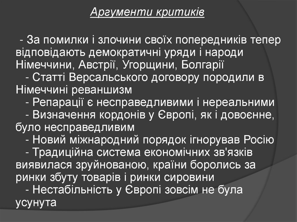 Аргументи критиків- За помилки і злочини своїх попередників тепер